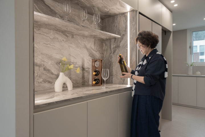 상담 단계에서부터 주방과 수납을 중심으로 세밀하게 논의하였으며, 작은 부분 하나하나까지 꼼꼼히 확인하였습니다. 또한 마감재도 직접 선택하며 진행하였기에, 과정 내내 원하는 방향이 충실히 반영되고 있음을 확신할 수 있었습니다.