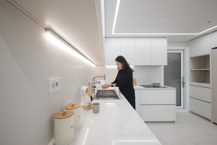 밝고 아늑한 분위기로 바뀌다 보니 자연스럽게 집에서 보내는 시간이 많아졌습니다. 주방과 거실 사이의 동선도 훨씬 편해져 식사 준비나 아이들 간식을 챙길 때 움직임이 한결 수월해졌습니다. 무엇보다 부족했던 수납이 정리되면서 집이 깔끔하게 유지되고 마음도 여유로워졌습니다.