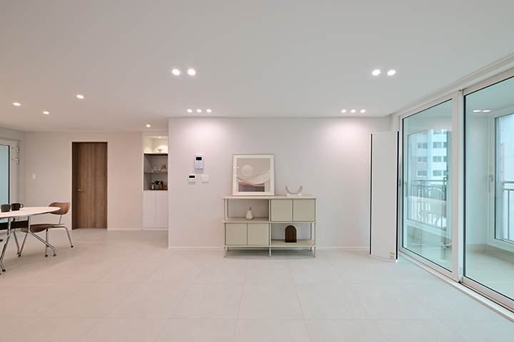 어린 자녀를 위해 건강하고 안전하게 자랄 수 있도록 공간을 조성하는데 집중한 사례입니다. 단열 성능이 우수한 창호로 교체해 결로와 곰팡이 문제를 개선하고, 고탄성 쿠션층이 돋보이는 바닥재를 시공해 바닥에서 보내는 시간이 많은 아이를 위한 공간을 완성했습니다. 내추럴한 화이트 톤의 마감재에 우드 포인트를 살려 아늑함을 더한 리모델링 현장을 소개합니다.